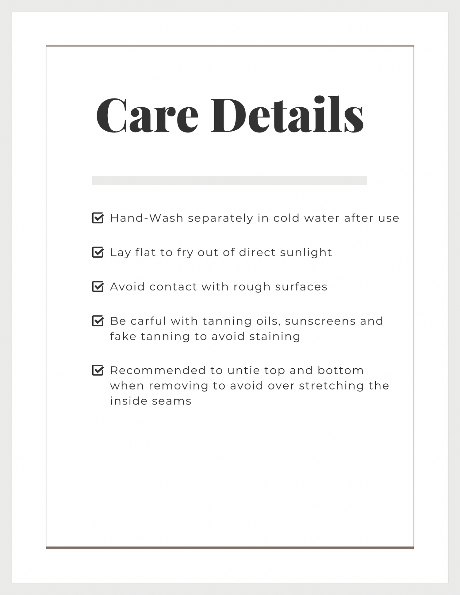 Size Guide & Care Details