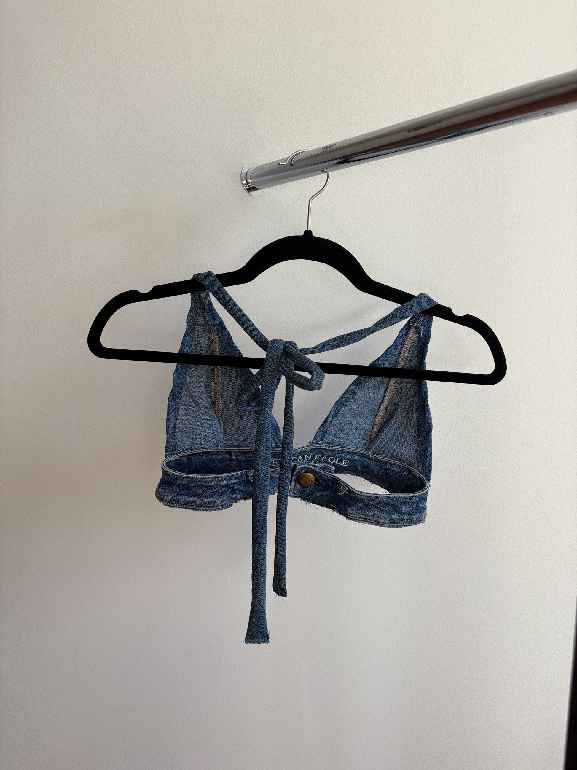 Don’t miss this unique, one-of-a-kind reworked denim top—ideal for summer outings, festivals, or a stylish day at the cottage.